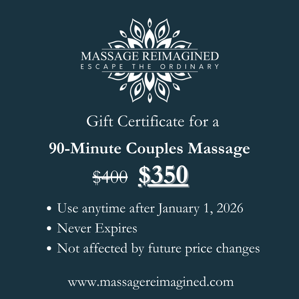 This is a gift certificate for a 90-minute Couples Massage at either our Magnolia or Lower Queen Anne practices. It can be used any time after January 1, 2026. There is no expiration date, and it is specifically for the service, so it is not affected by future price changes.
